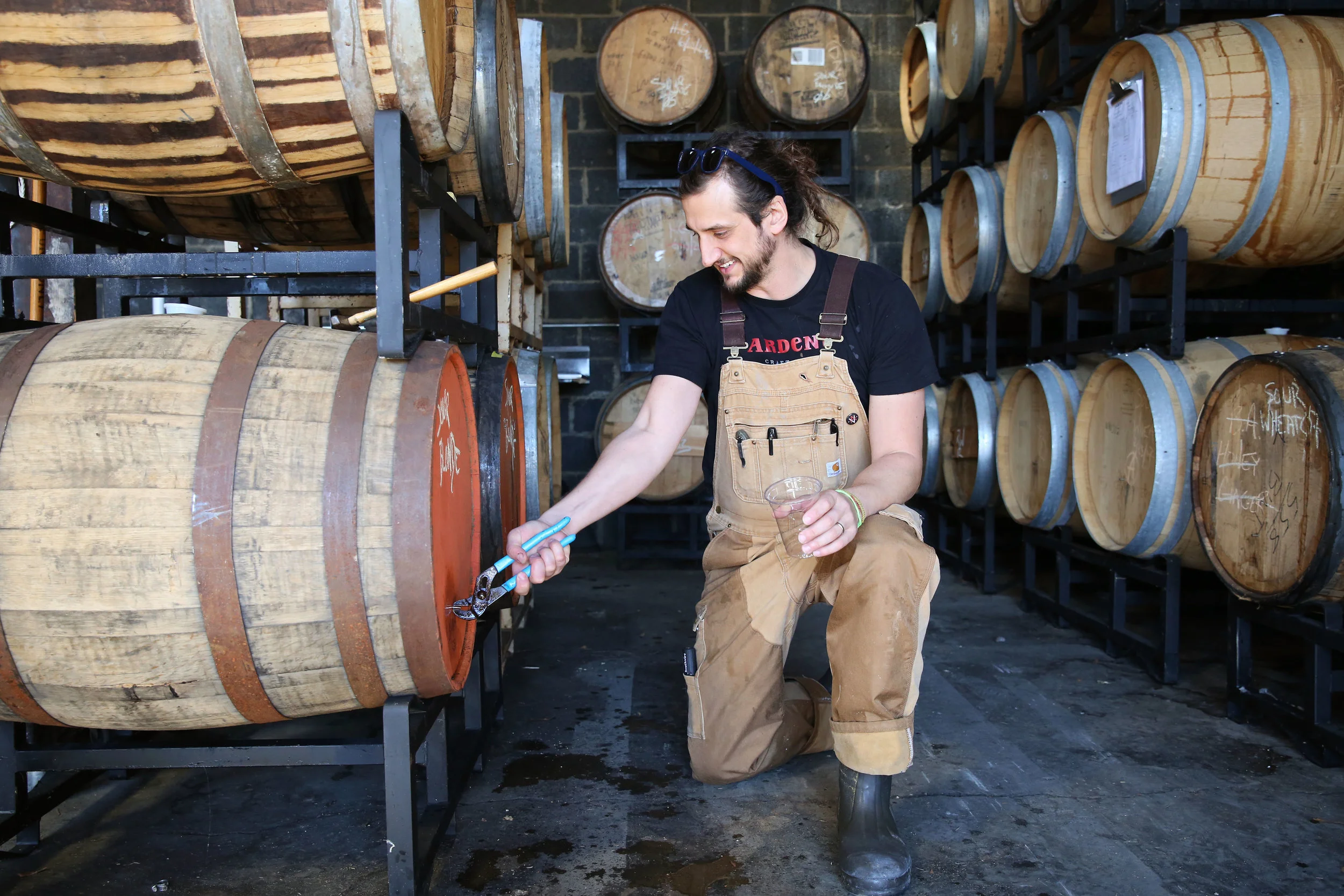 Welcome to the Donkey Barn! You may have noticed the garage in the corner of our parking lot and beer garden, which is where we ferment and age our various sour projects. Inside are dozens of barrels, ranging in size, age, and original use, from full-sized wine barrels to miniature bourbon barrels and tons of others in between.